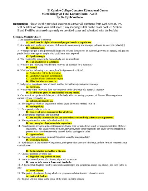 QNA - Read Online MICROBIOLOGY FINAL EXAM WITH ANSWERS iBooks Open Library